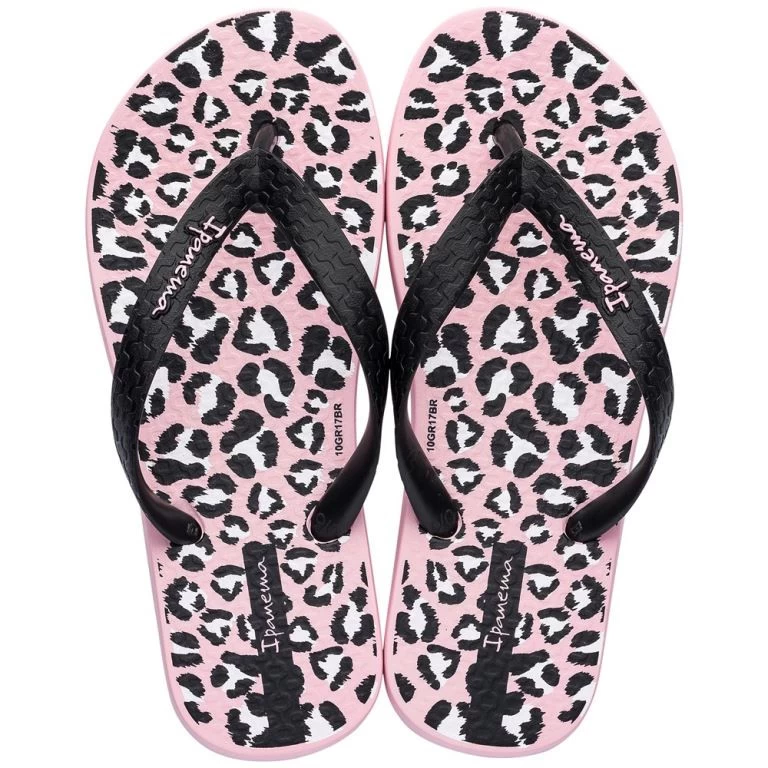 De print op de zool van de Ipanema Classic kids maakt deze slipper onweerstaanbaar met de trendy panterprint in donker of licht roze. Deze Ipanema teenslipper voor kids heeft een klassiek flexibel voetbed.